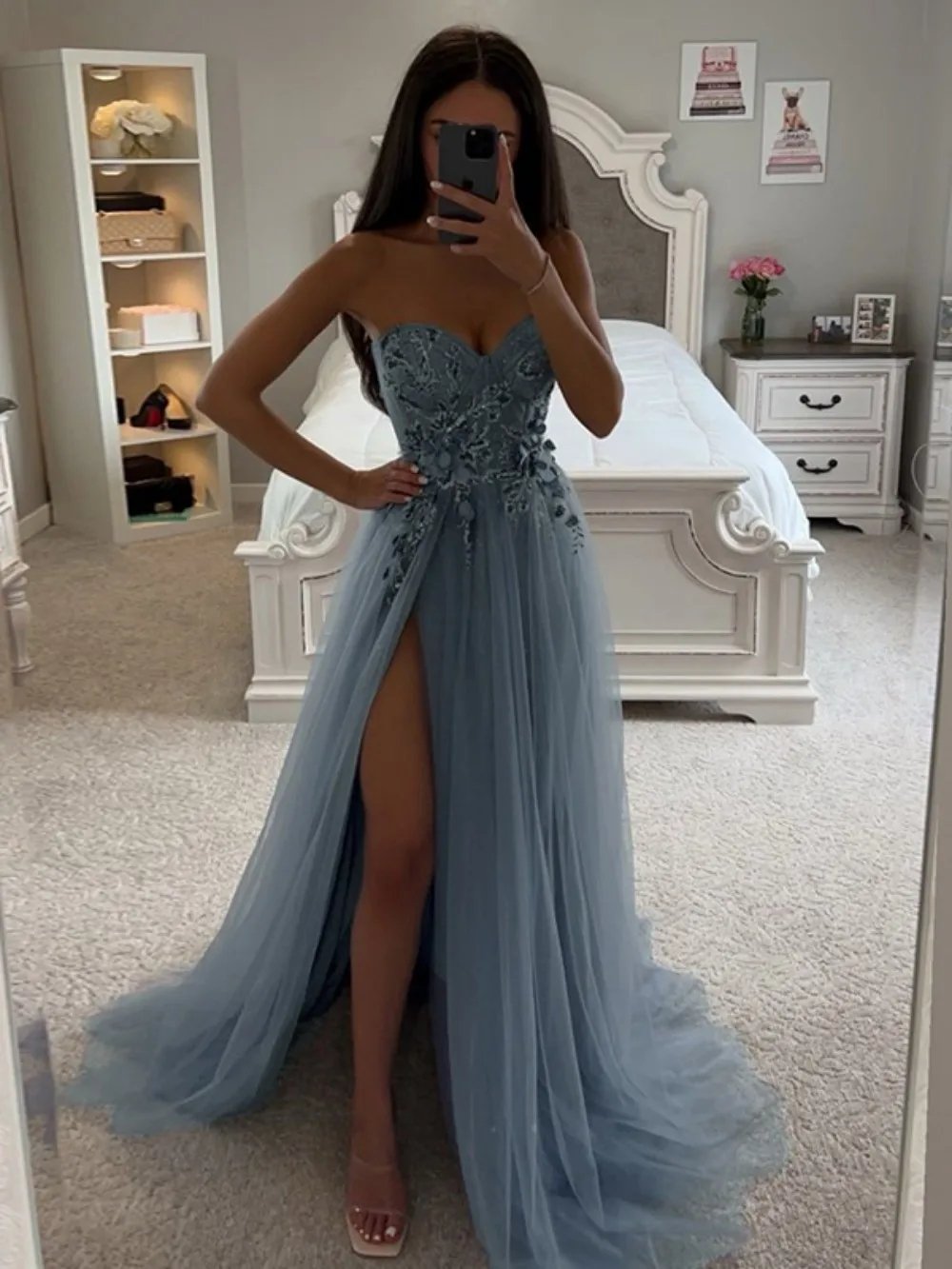 ✔ Elegant Detailing: The floral appliques, lace, and ruched embellishments elevate the design, giving it an ethereal, romantic vibe that is perfect for prom or any evening affair.